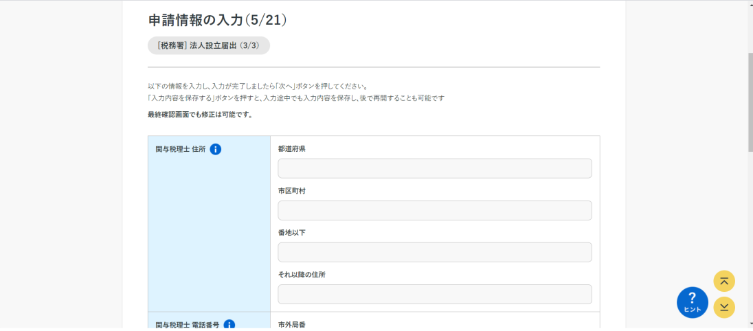 税務署書類の申請情報の入力