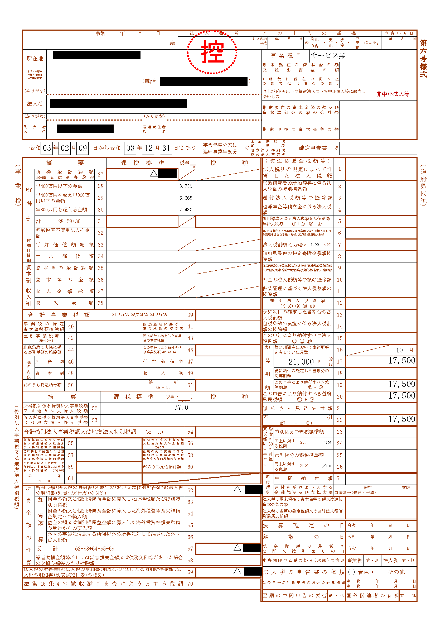 - 法人税確定申告書(わかるところだけ書く)